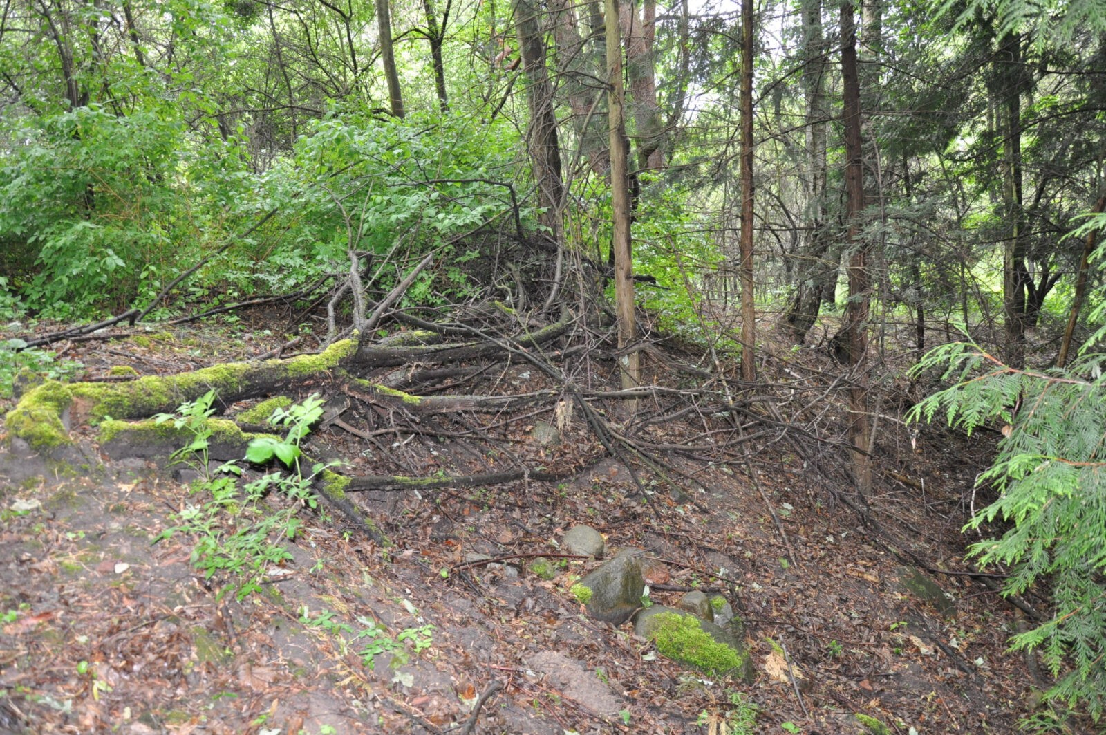całe zbocze góry zamkowej na wyspie jest zarośnięte zielenią, robienie jakichkolwiek zdjęć mijałoby się z celem gdyż na zdjęciu byłaby tylko zielona ściana. Aby się na nią wspiąć należy pokonać pokrzywy i krzaczory do kolan po dość grząskim gruncie.
