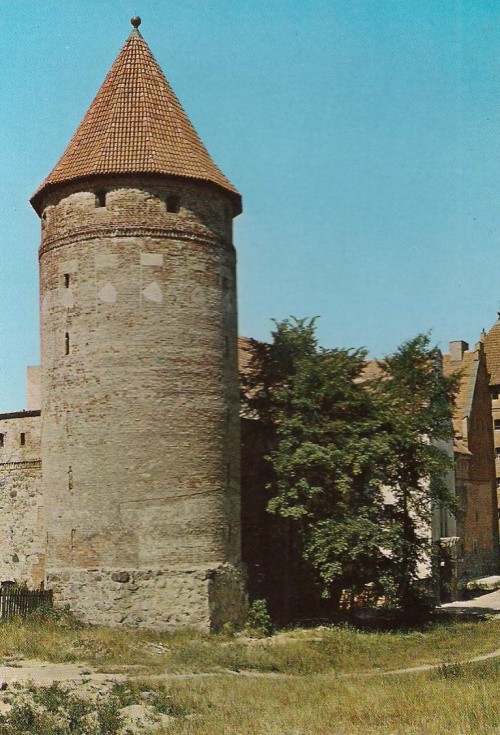 baszta zamkowa na pocztówce z lat 70-tych XX wieku