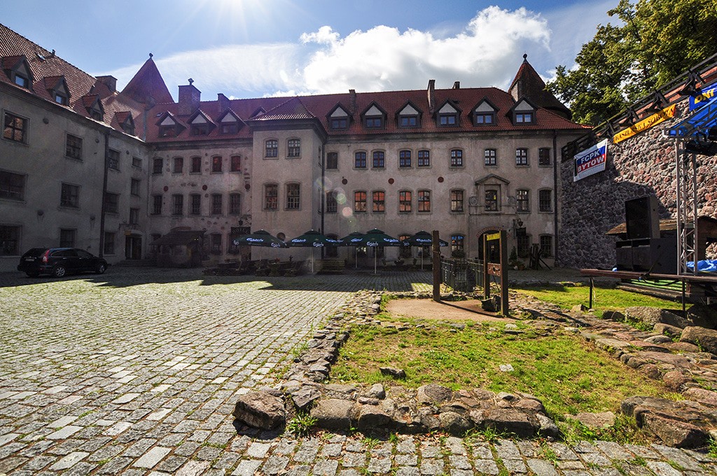 zamek wraz z dziedzińcem oraz w środku, maj 2013