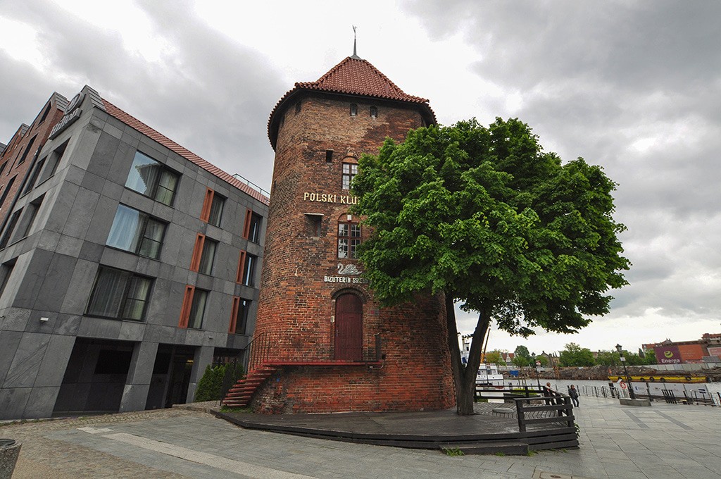Baszta Łabędź wzniesiona w miejscu zamkowej Baszty Rybackiej