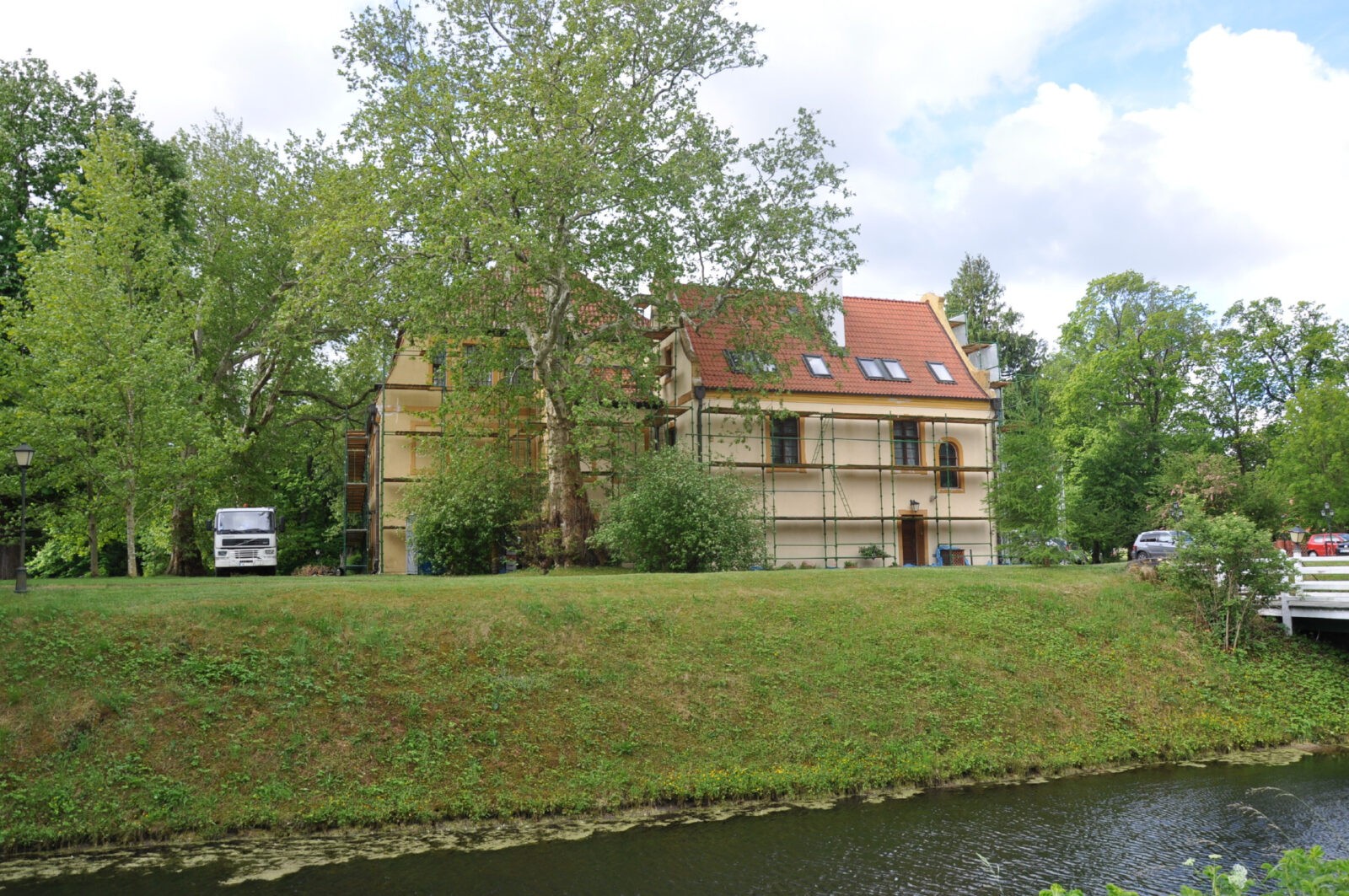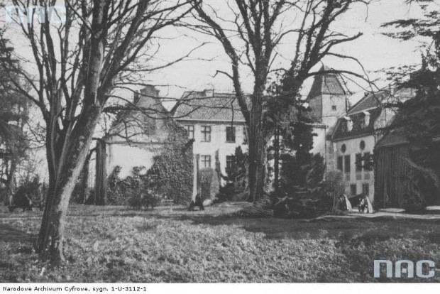 Widok z parku na zamek w okresie międzywojennym