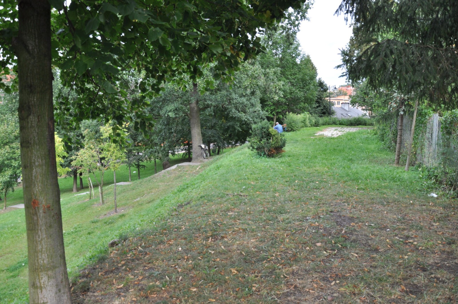 widok ze wzgórza zamkowego na fosę