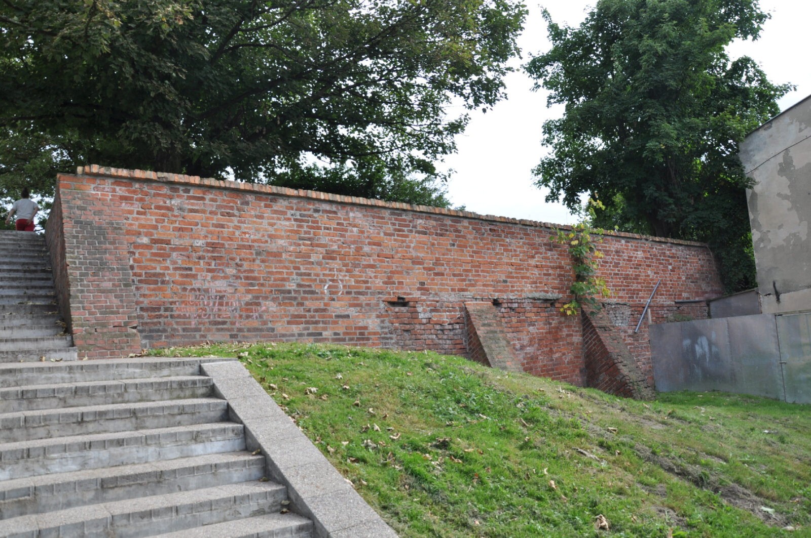Budynek szkoły, wzmiankowany w drugim dokumencie lokacyjnym miasta w 1336 r., stanowił obok kościoła i zamku charakterystyczny murowany element w panoramie miasta od strony doliny Wisły7. Jego lokalizacja, mimo umieszczenia na kilku rysunkach ikonograficznych, nie była znana do 1997 r. Wówczas to w trakcie wykonywania wykopu sondażowego przy zachodnim murze obronnym miasta natrafiono na relikty murów kamienno-ceglanych z zachowaną pachą sklepienia krzyżowo-żebrowego.