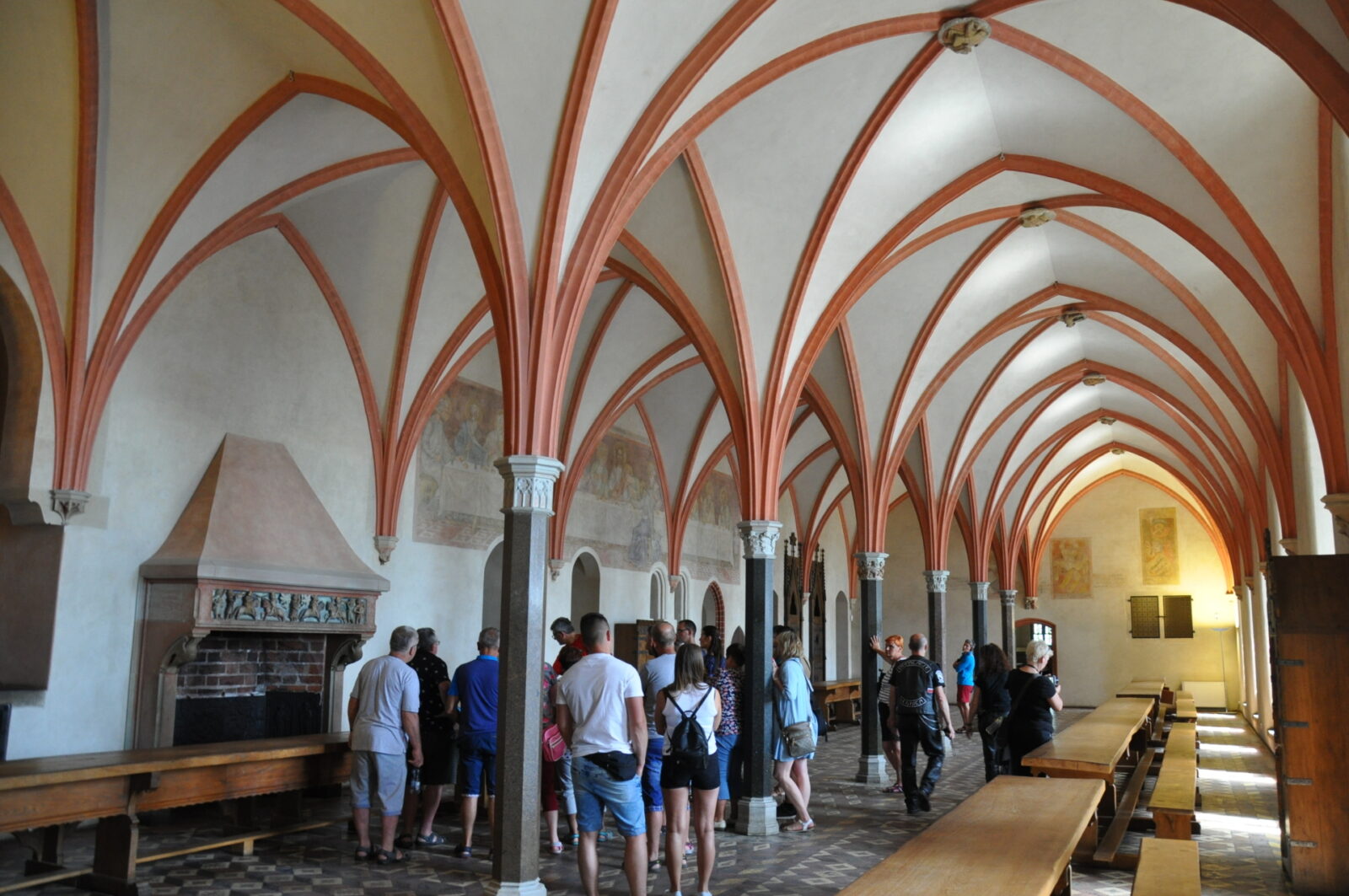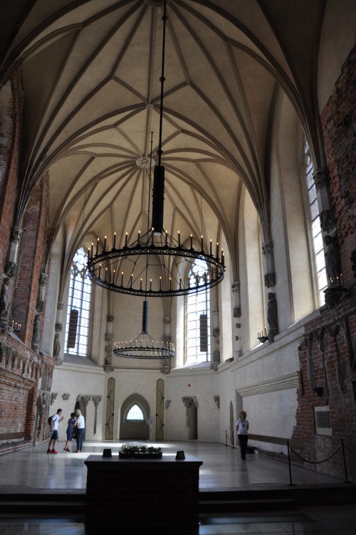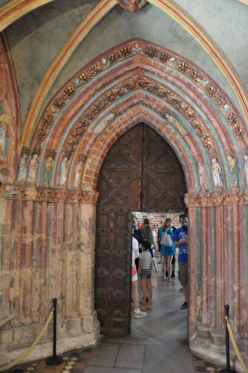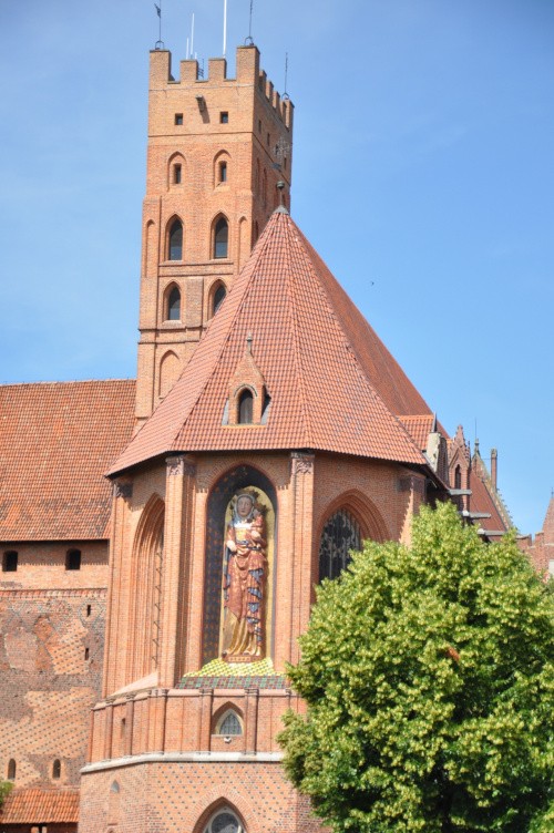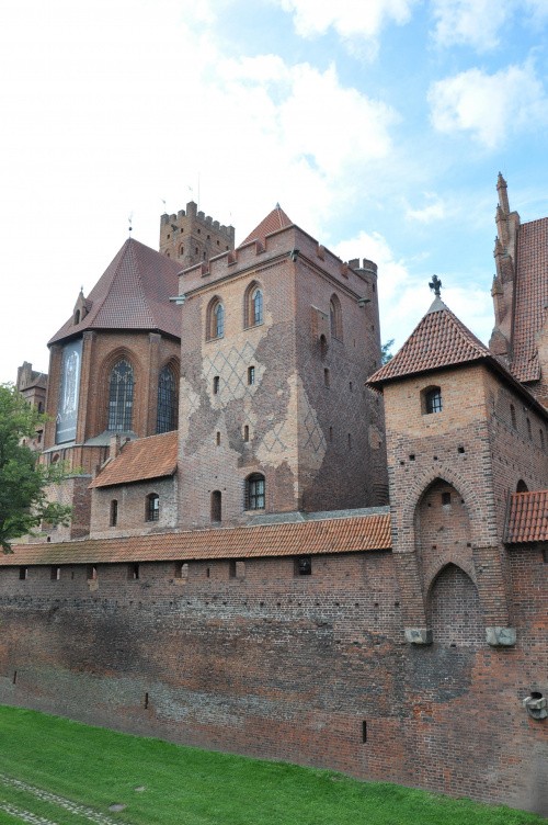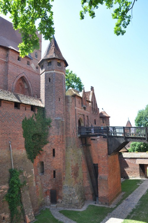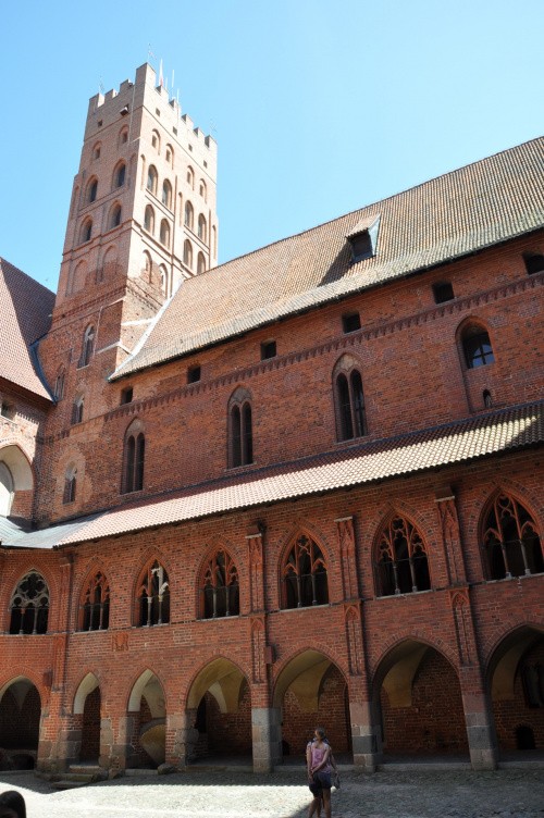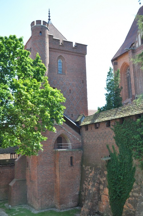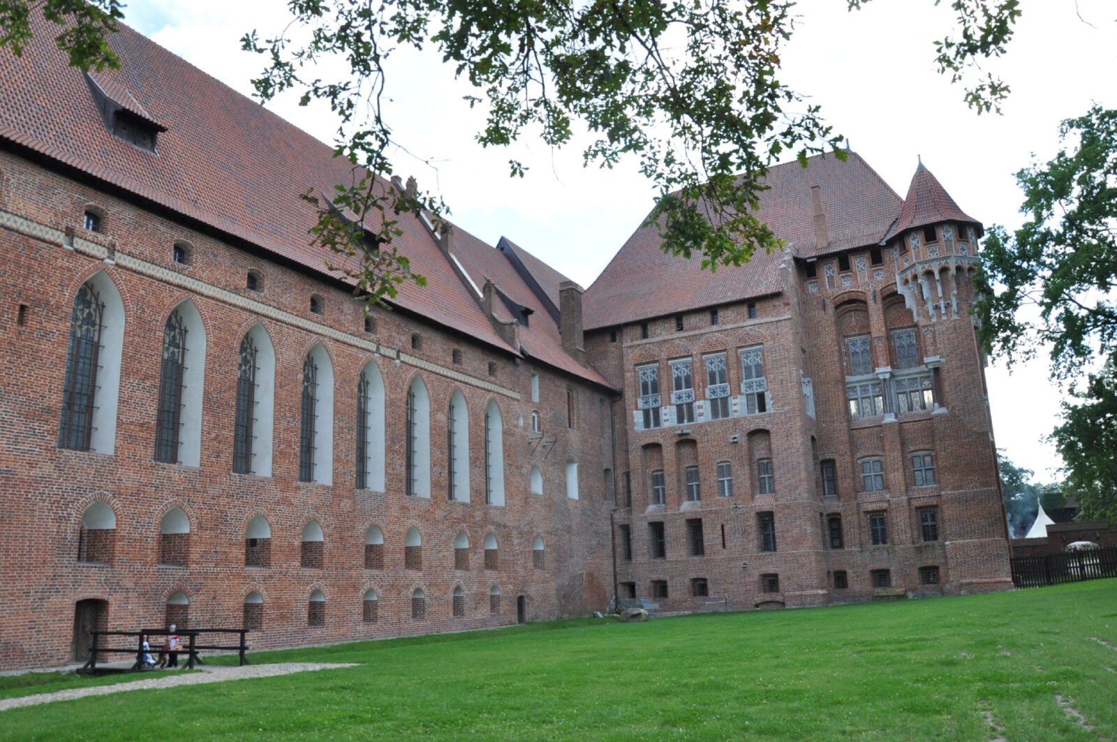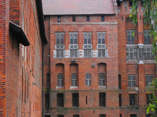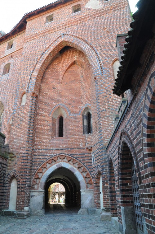 Budynek Szkoły Łacińskiej głębokim blendowaniem, zamiast przypór w Malborku bardzo przypomina architekturę romańską klasztoru cysterskiego w Wąchocku.