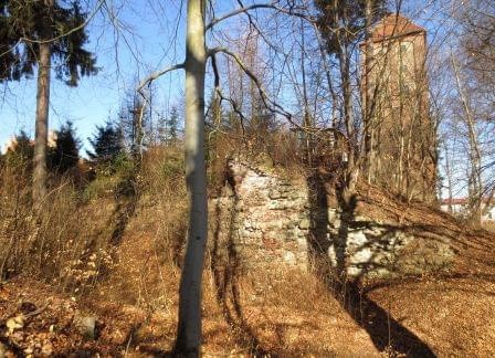 A tu wraz z fragmentem muru oddzielającego przedzamcze od zamku wysokiego