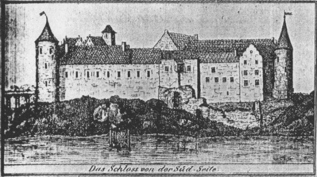 północne skrzydło przedzamcza w 1750 roku na rysunku Dewitza
