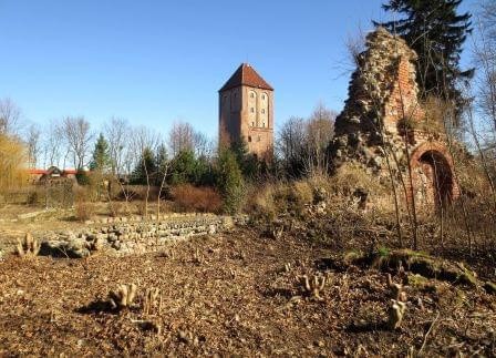 Byłem rano. Furtka zamknięta, nie znalazłem ani dzwonka, ani właściciela. Za to obudziłem wszystkie psy we wsi, które mnie dokładnie obszczekały. Przedzamcza więc nie zwiedziłem, zwiedziłem za to zamek wysoki, do którego dostęp jest wolny i wiedzie ścieżką wzdłuż jeziora. Niestety, nawet wczesną wiosną ilość chaszczy przeraża. (fot. marzec 2014)