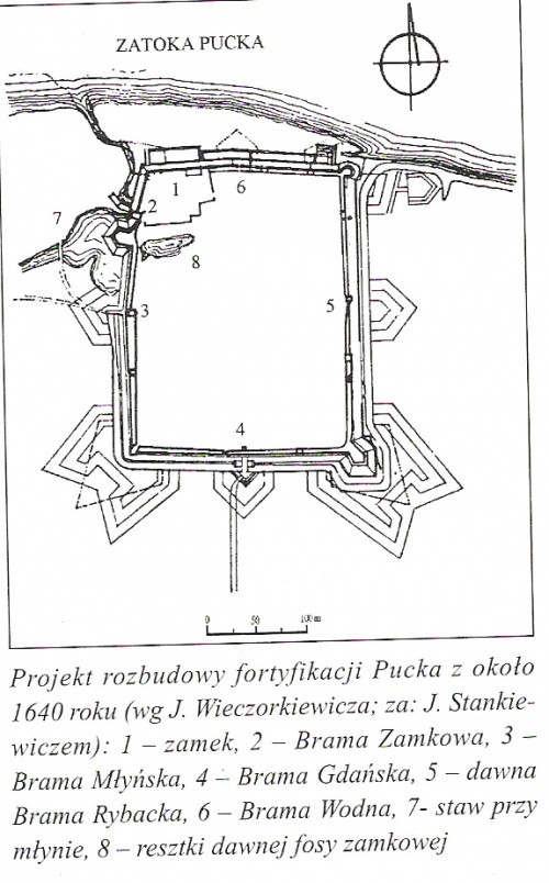 To doświadczenie wzmogło troskę króla, Sejmu i sejmików pruskich o stan obronności warowni. Zwraca się zatem uwagę na potrzebę wzmocnienia i konserwacji systemu fortyfikacyjnego oraz utrzymywania licznej załogi, jak też na odpowiedni stan zgromadzonego w arsenale uzbrojenia. Na polecenie króla Władysława IV Wojskowy inżynier Fryderyk Getkant wykonał w 1634 r. projekt nowych fortyfikacji ziemnych obejmujących zamek i miasto. Niestety, na skutek stałych trudności finansowych państwa został on tylko w części zrealizowany. "Potop" szwedzki nie poczynił większych szkód ani w zamku, ani w mieście. Jedyne poważniejsze działania militarne w tym rejonie to oblężenie Pucka w 1665 roku. Zostało ono odparte przez część załogi wiernej królowi polskiemu przy pomocy wojsk przysłanych przez gdańszczan. Pomoc ta okazała się jednak kosztowna i brzemienna w skutki. Poważne zadłużenie na wydatki wojenne poniesione przez miasto spowodowało, że starostwo puckie jeszcze do roku 1678 pozostawało we władaniu Rady Miejskiej Gdańska. Przejął je z jej rąk król Jan III Sobieski, będący również starostą puckim, a po jego spadkobiercach w roku 1717 rodzina Przebendowskich. Kres władztwu polskiemu na zamku w Pucku położył w 1772 r. pierwszy rozbiór Polski. Niedługo potem zamek doszczętnie rozebrano i zniknął ona na zawsze z panoramy miasta. (źr: http://www.archeo.uw.edu.pl)