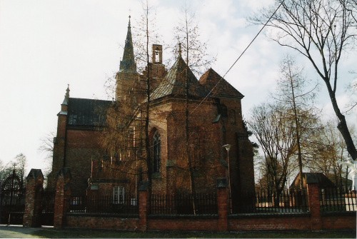 Neogotycki kościół wzniesiony w miejscu gotyckiego ufundowanej w 1417 roku przez króla Władysława Jagiełłę, z zachowaną w bryle gotycką dzwonnicą i plebanią z 1884 roku