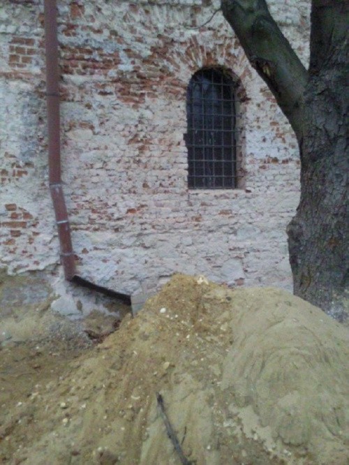 Trwa remont kościoła. Kilka aktualnych fotek. Widać zamurowane okna w fasadzie kościoła.