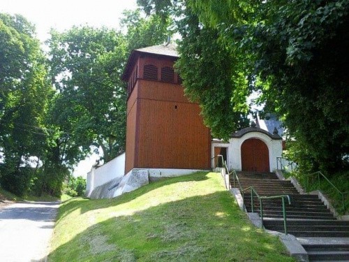Ten sam budynek od strony kościelnego dziedzińca. Znajduję się on od strony najłagodniejszego podejścia pod kościół. Słyszałem historyjkę, że pod tynkiem kryją się ślady otworów podobnych do strzelnic ... ... ale ile w tym prawdy któż to wie.