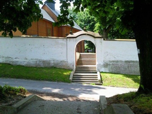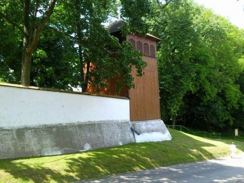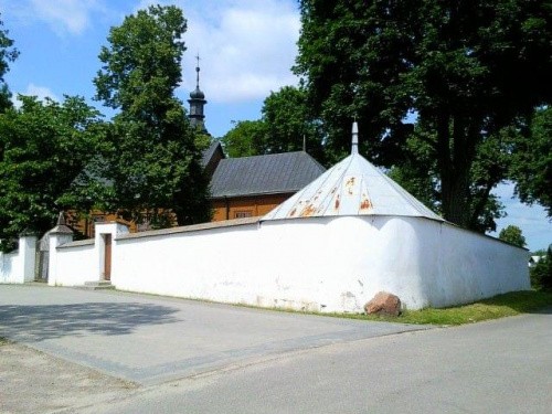 Na cmentarzu kościelnym znajduje się drewniana, czworoboczna dzwonnica wzniesiona jednocześnie z kościołem oraz nagrobek Felicjany z Fredrów Grodzickiej z 1892 r. i płyta nagrobna Stanisława Spinka herbu Prus z XVI w.