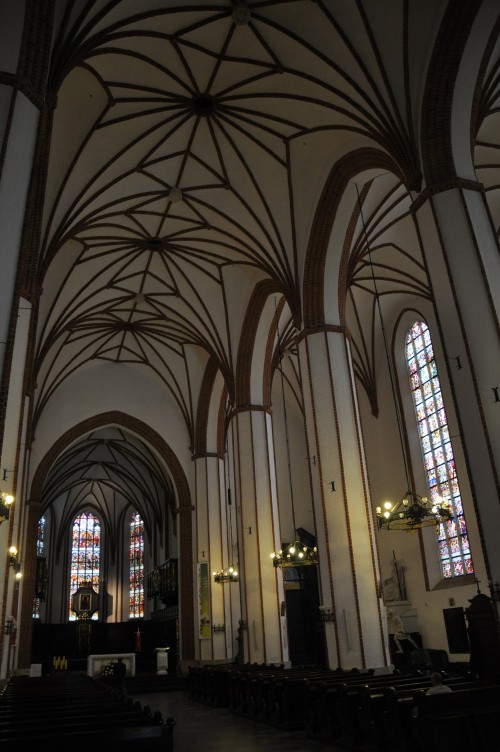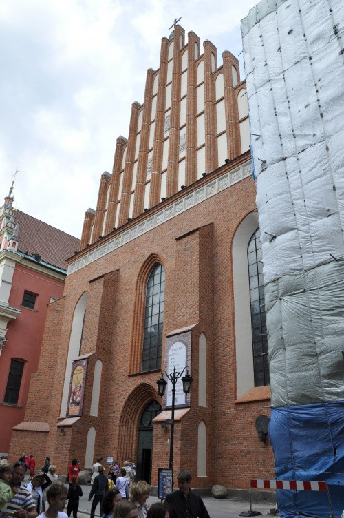 Katedra była wielokrotnie przebudowywana, najczęściej w XIX wieku (neogotyk angielski). Kościół do XIX wieku stanowił przykład gotyku. Świątynia została niemal całkowicie zniszczona przez Niemców w 1944. Zrekonstruowano ją w latach 1948 – 1956 wzorując się na planach pierwotnego kościoła z XIV wieku, według projektu odbudowy autorstwa Jana Zachwatowicza oraz Marii i Kazimierza Piechotków. Powojenna fasada została zbudowana w tzw. gotyku nadwiślańskim i wzorowana była na fasadzie kościoła dominikanów pw. św. ap. Piotra i Pawła w Chełmnie.
