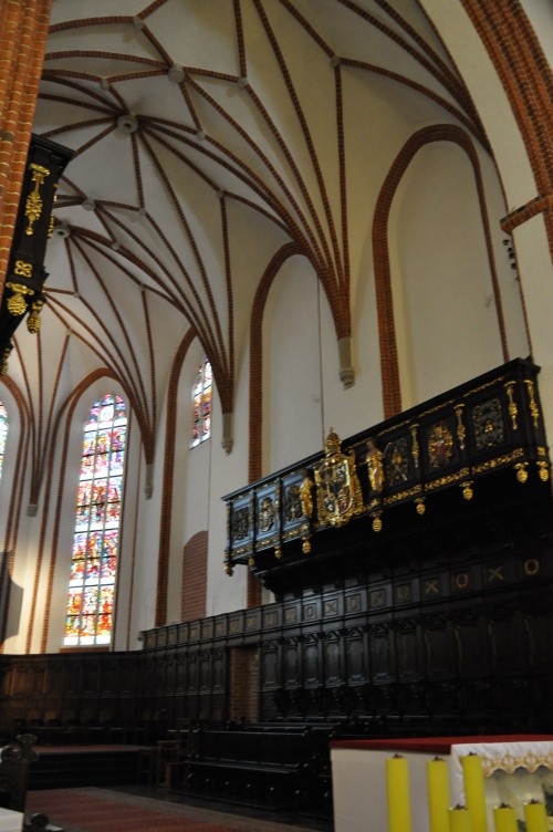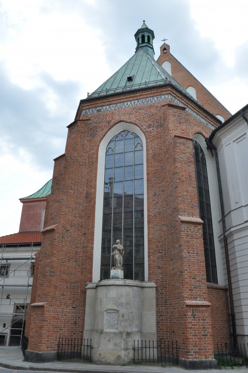 Pierwszą świątynią w miejscu dzisiejszego prezbiterium była wybudowana na przełomie XIII i XIV wieku drewniana kaplica zamkowa. Kaplica ta w pocz. XIV wieku został kościołem parafialnym miasta i w takim charakterze wymienia ją pierwsza wzmianka z 1339 roku. Około 1390 z inicjatywy księcia Janusza I Starszego powstała tu gotycka budowla murowana. Kościół ten stał się także miejscem pochówku książąt mazowieckich.