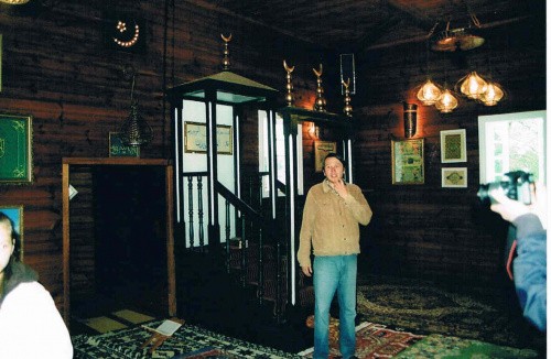 Swoim kształtem budynek nawiązuje do okolicznych kościołów z dwiema wieżami. Zbudowany jest na planie prostokąta o wymiarach 10x13m. Z zewnątrz i wewnątrz pokryty jest drewnianą boazerią pomalowaną na ciemnozielony kolor (zieleń kolor islamu). Od strony północnej budynek zdobią dwie wieże pokryte również drewnem. Na kalenicy dachu stoi trzecia (nieco mniejsza od pozostałych) wieżyczka bez okien. Przesunięta jest nieco w kierunku mihrabu. Dachy trzech wieżyczek są w kształcie hełmu zwieńczone półksiężycami. Dach głównej części budynku pokryty jest gontem. Wnętrze podzielone jest na dwie części: dla kobiet i mężczyzn. Wejście dla kobiet umiejscowione jest na głównej osi budynku. Zwieńczone jest trójkątnym tympanonem, po którego bokach wznoszą się dwie wieże. Wejście dla mężczyzn znajduje się w bocznej ścianie. Pomieszczenie dla kobiet jest znacznie mniejsze i oddziela je od części męskiej drewniane przepierzenie, w którym na wysokości około 1 m wykonano podłużną szparę, zasłoniętą białą, przejrzystą firanką. Wnętrze udekorowane jest dywanami a ściany muhirami - kaligraficznym zapisem cytatów z Koranu.
