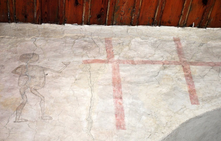 Plac kościelny o regularnym prostokątnym zarysie wydzielony jest kamiennym murem z bramka od wschodu i furtą od północy. Pełnił on funkcję cmentarza o czym świadczą widoczne jeszcze gdzieniegdzie zarysy grobów. |
