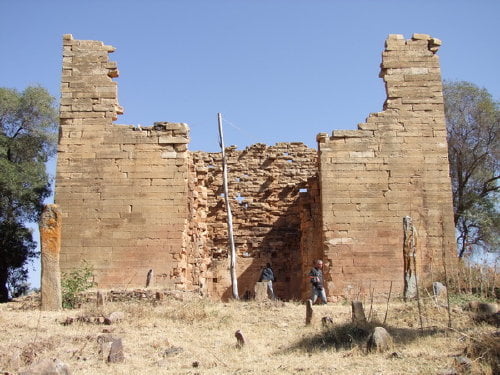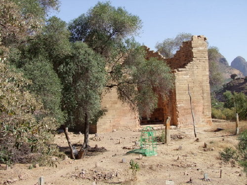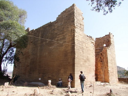 Ruiny Świątyni Księżyca w Yeha na północy Etiopii w rejonie Tigraj, tuż przy granicy z Erytreą. Świątynia pochodzi prawdopodobnie z okresu panowania królowej Mekedy (znanej powszechnie jako Saba), czyli liczy sobie około 2500 lat. Budowla na planie prostokąta. Obecne mury wznoszą się na ok. 12 metrów, ale budowla była wyższa.