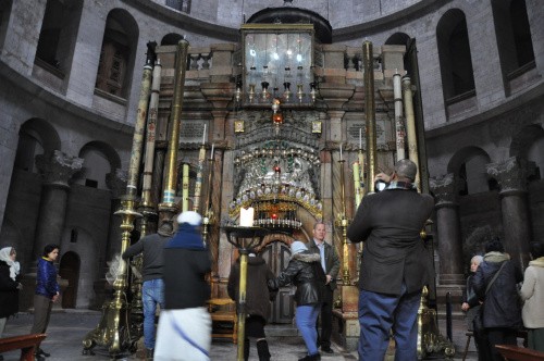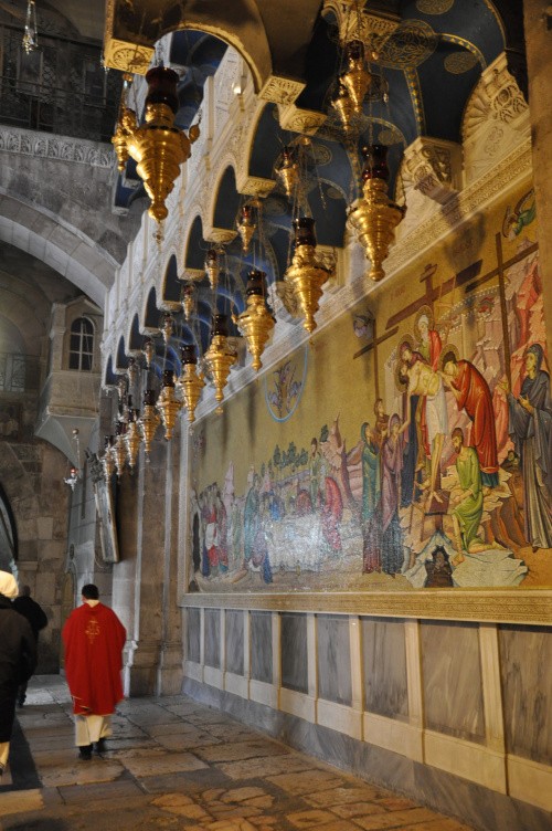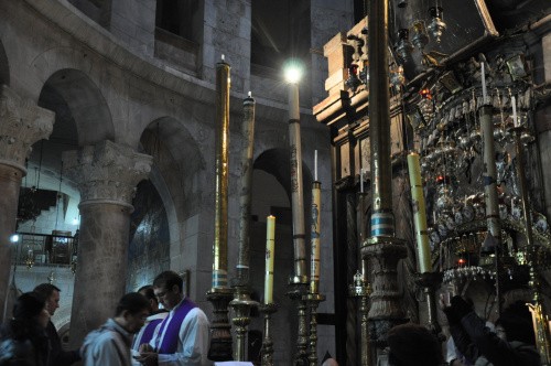 Do Jerozolimy przybyliśmy o 5 rano, jako, że doba hotelowa dla nas zaczynała się od 12 zostawiliśmy bagaże i udaliśmy się w miasto. Byliśmy na miejscu ok 5.30 rano, niewiele ludzi, wzięliśmy udział w mszy (kilkanaście osób) o godz 6.00 (była to środa popielcowa). Niesamowite wrażenie, przy grobie pańskim z jednej strony msza katolicka, po drugiej stronie grobu, obrządku greckiego.