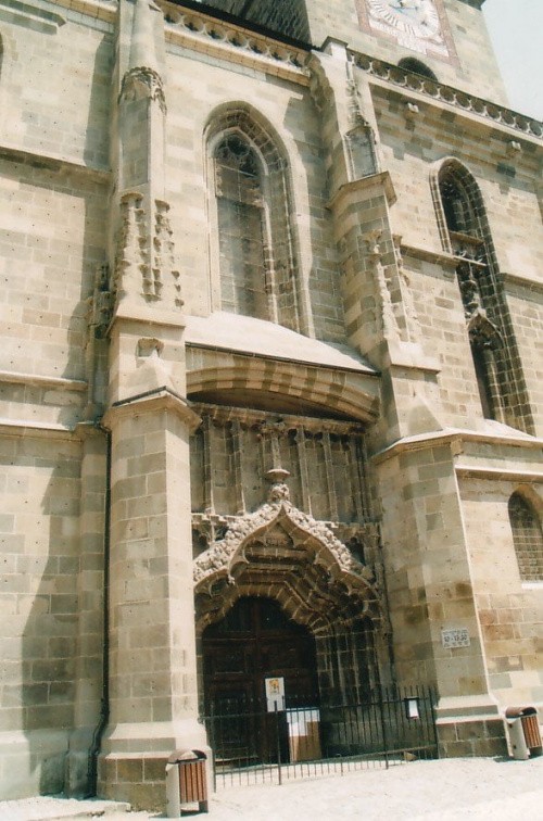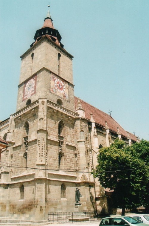 | Czarny Kościół został zbudowany w stylu późnogotyckim. Ma 89 metrów długości i 38 szerokości. Wysokość wieży południowej wynosi 65 metrów[2]. Czyni go to największym kościołem gotyckim Rumunii. Czarny Kościół jest kościołem obronnym, który w razie wojny służył jako schronienie dla mieszkańców miasta[7]. |