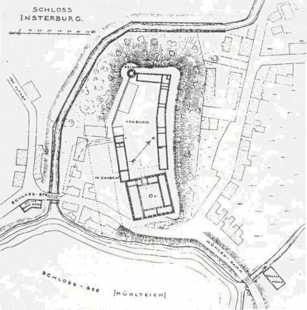 W 1336 Krzyżacy, na miejscu zdobytej pruskiej warowni Unsatrapis, wznieśli zamek nazwany Instierburg, który stał się ośrodkiem, z którego prowadzono dalsze akcje zbrojne przeciwko Litwie. Zamek był siedzibą komturii, a od 1347 prokuratora. W 1376 Litwini zdobyli i zniszczyli zamek, który został jednak wkrótce odbudowany. W czasie wojny trzynastoletniej w 1457 zamek zdobyli Polacy. U stóp zamku rozwinęła się osada, która w 1541 uzyskała prawo targu, a 10 października 1583 prawa miejskie. 9 czerwca 1590 miasto strawił pożar, który zniszczył 140 ze 149 domów. W XVII miasto podupadło za sprawą licznych przemarszów wojsk i najazdów (szwedzkich, rosyjskich i tatarskich). W 1709 w wyniku zarazy miasto uległo wyludnieniu. W celu ożywienia miasta, sprowadzono do niego osadników z Litwy i Szwajcarii. W czasie wojny siedmioletniej w latach 1758-1762 miasto było okupowane przez Rosjan. Zamek został przebudowany po 1700 roku. Restaturowany w 1938 roku. Obecnie większość zabudowań w ruinie. W ocalałej części mieści się niewielkie muzeum historyczno-krajoznawcze.