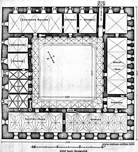 Miasto założone na miejscu pruskiego grodu, który był centralnym ośrodkiem pruskiej krainy Skalowii, zdobytego w 1277 przez Krzyżaków. W 1289 Krzyżacy zbudowali zamek nazwany Landeshutte będący siedzibą komturii. Nazwa ta jednak nie przyjęła się i miejsce nazywano Ragnit od nazwy lokalnej rzeki, dopływu Niemna. W latach 1397 - 1409 Krzyżacy zbudowali w Ragnecie nową twierdzę z kamienia i cegły. Budową twierdzy kierował mistrz krzyżacki Konrad Fellenstein z Marienbergu. Zdobyty przez Szwedów, uległ wtedy częsciwoemu zniszczeniu. Uzywany jeszcze w XIX wieku