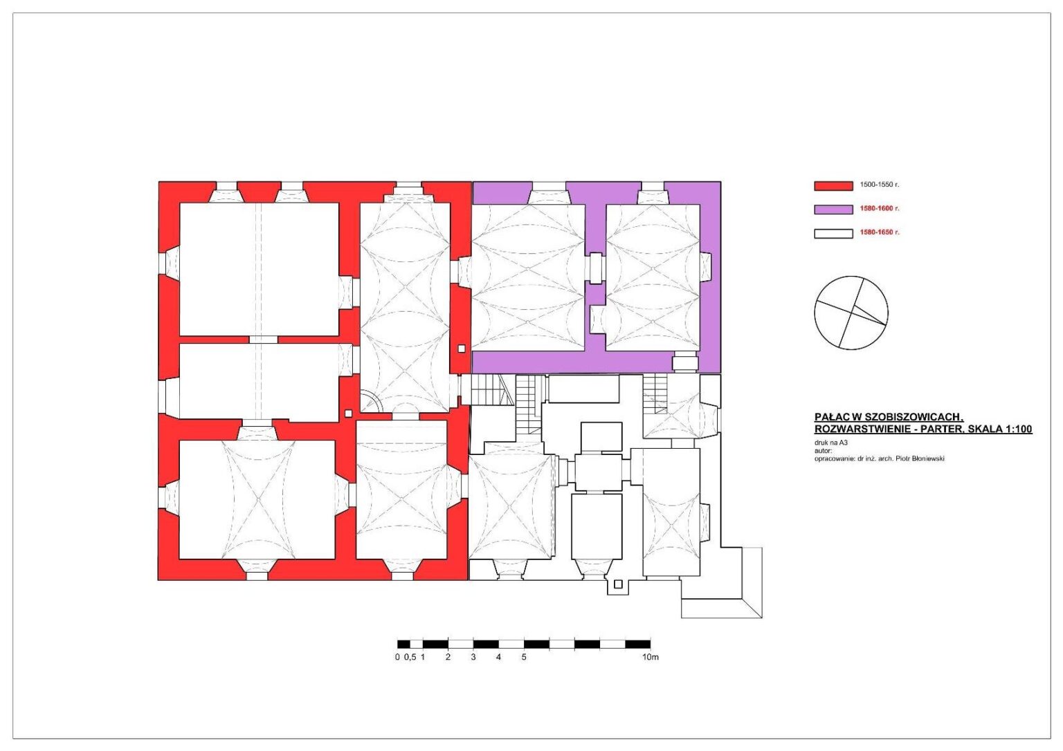 SZOBISZOWICE, plan dworu z rozwarstwieniem czasu powstania murów