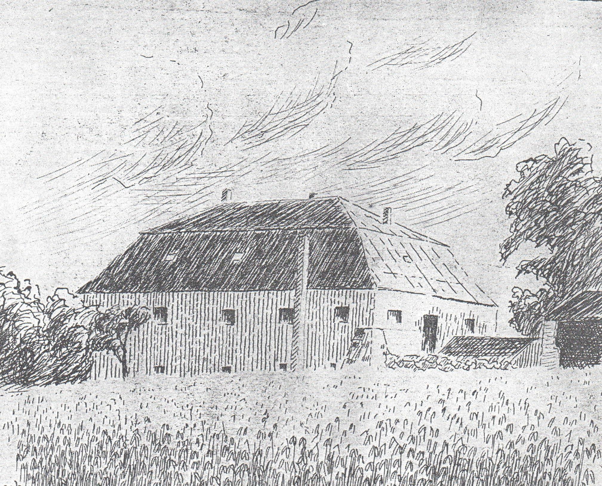 SZOBISZOWICE, rysunek zamku z początku XX wieku od północnego wschodu; sądząc po wielkości okien pełnił być może wówczas funkcję spichlerza wg OiB