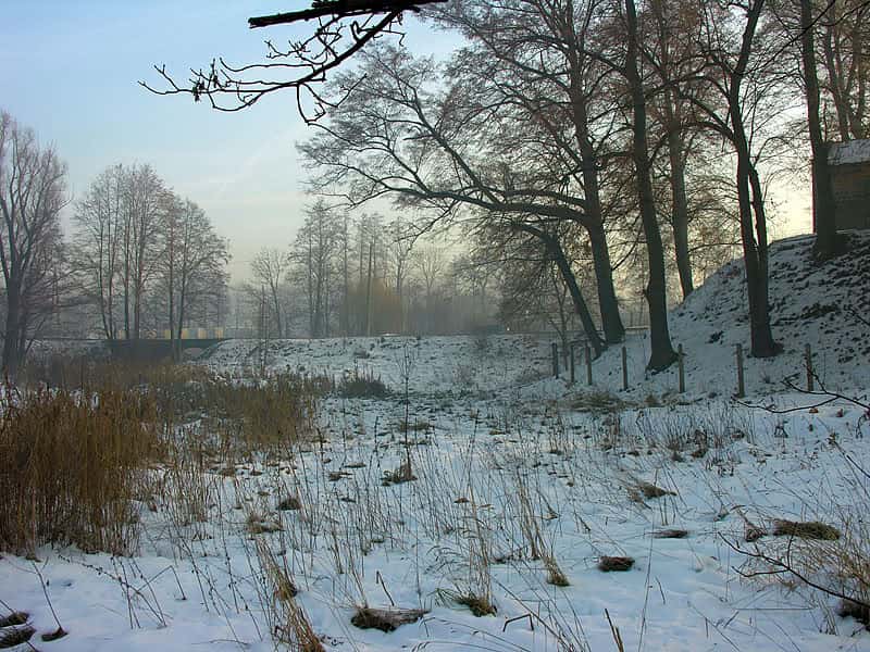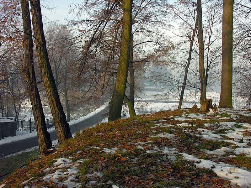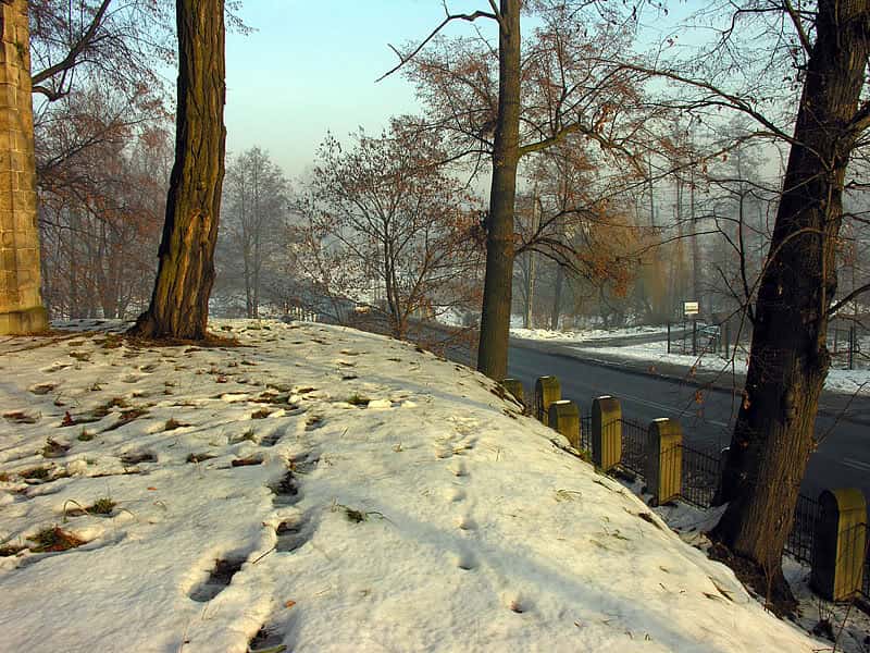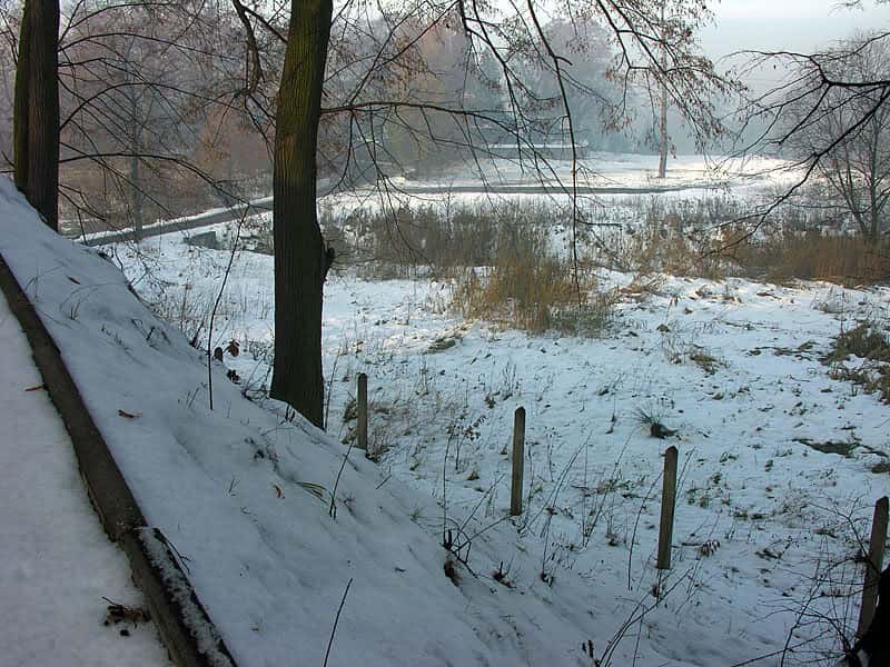 Widoki z kopca na fosę (lub miejsce, gdzie prawdopodobnie kiedyś była)