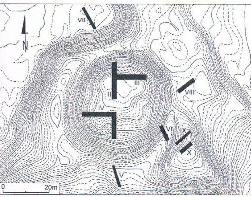 Gródek znajduje się zasadniczo na lewo od zaznaczonego na zdjęciu miejsca. Jest on porośnięty drzewami stad go nie widać. To co jest zaznaczone to po prostu kawałek pola