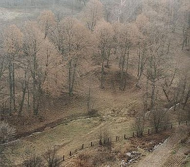 Cmentarz znajduje się poniżej grodziska.