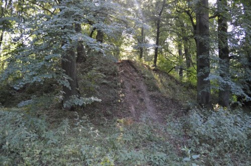 Poniżej grodziska, po przeciwnej stronie drogi w zdziczałym parku stoją jeszcze ruiny barokowego pałacu.