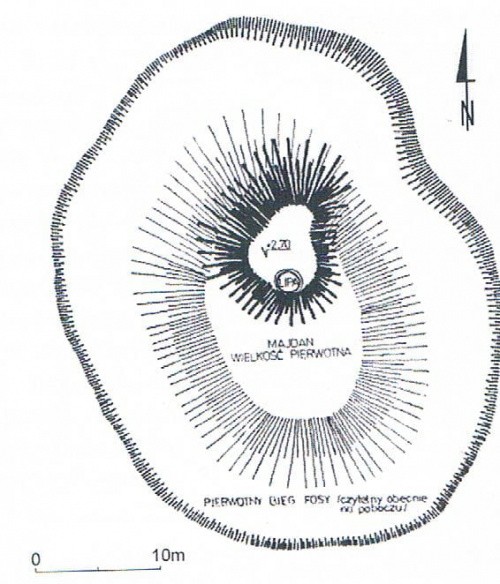 Od strony północno-wschodniej zachowane ślady fosy oraz słabo już czytelny wał.