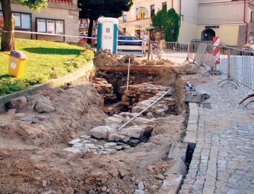 Fragmenty muru, będącego prawdopodobnie częścią fortyfikacji obronnych miasta z XVI wieku, zostały odkopane podczas przebudowy ulicy Wzgórze. Odkrycie spowolniło nieco roboty, ale też dało cenny materiał do przemyśleń i badań archeologom.