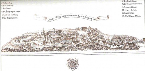 panorama miasta na rysunku Samuela Johannyego z 1801 roku