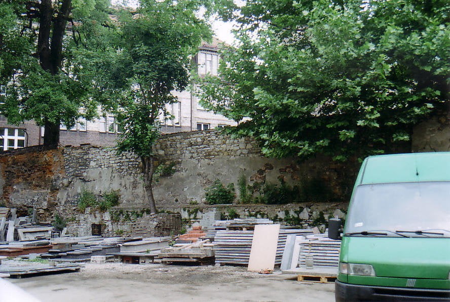 Zaglądając na podwórka kamienic przy Korfantego i Katowickiej można odnaleźć niewielkie fragmenty murów. Przykładowo: