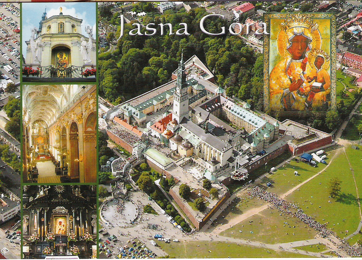 Plan Jasnej Góry: A – Brama Lubomirskich; B – Brama Matki Boskiej Królowej Polski; C – Brama Matki Boskiej Bolesnej; D – Brama wałowa (Brama Jagiellońska); E – Sala Maryjna; F – Bastion królewski (bastion Potockich); G – Pomnik o. Augustyna Kordeckiego; H – Skarbiec; I – Ołtarz przed szczytami; J – Bastion św. Trójcy (bastion Szaniawskich); K – Pomnik Jana Pawła II; L – Bastion Morsztynów; M – Brama Jana Pawła II (brama wjazdowa); N – Bastion św. Barbary (bastion Lubomirskich); O – Domy Muzykantów; P – Wieczernik; R – Wirydarz; S – Kaplica Jabłonowskich (kaplica Serca Pana Jezusa); T – Kaplica Denhoffów (kaplica św. Pawła Pierwszego Pustelnika); U – Wejście na wieżę; V – Kaplica św. Antoniego; W – Pokoje Królewskie; X – Bazylika; Y – Zakrystia; Z – Kaplica MB Częstochowskiej; a – Sala Rycerska; b – Wirydarz klasztorny; c – Refektarz i biblioteka; d, e – Klasztor; f – Studnia; g – Muzeum 600-lecia; h – Arsenał; i – Dziedziniec gospodarczy; j – Dziedziniec główny; k – Pomnik kard. Stefana Wyszyńskiego