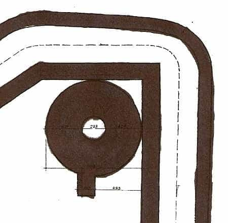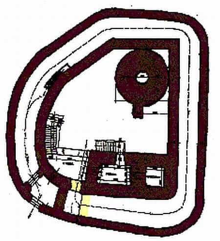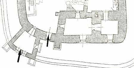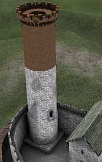 Ilustracja pokazuje położenie pierwotnego wejścia do wieży okrągłej. Obecna wysokość całej wieży równa się w przybliżeniu dawnej wysokości jej kamiennej części.