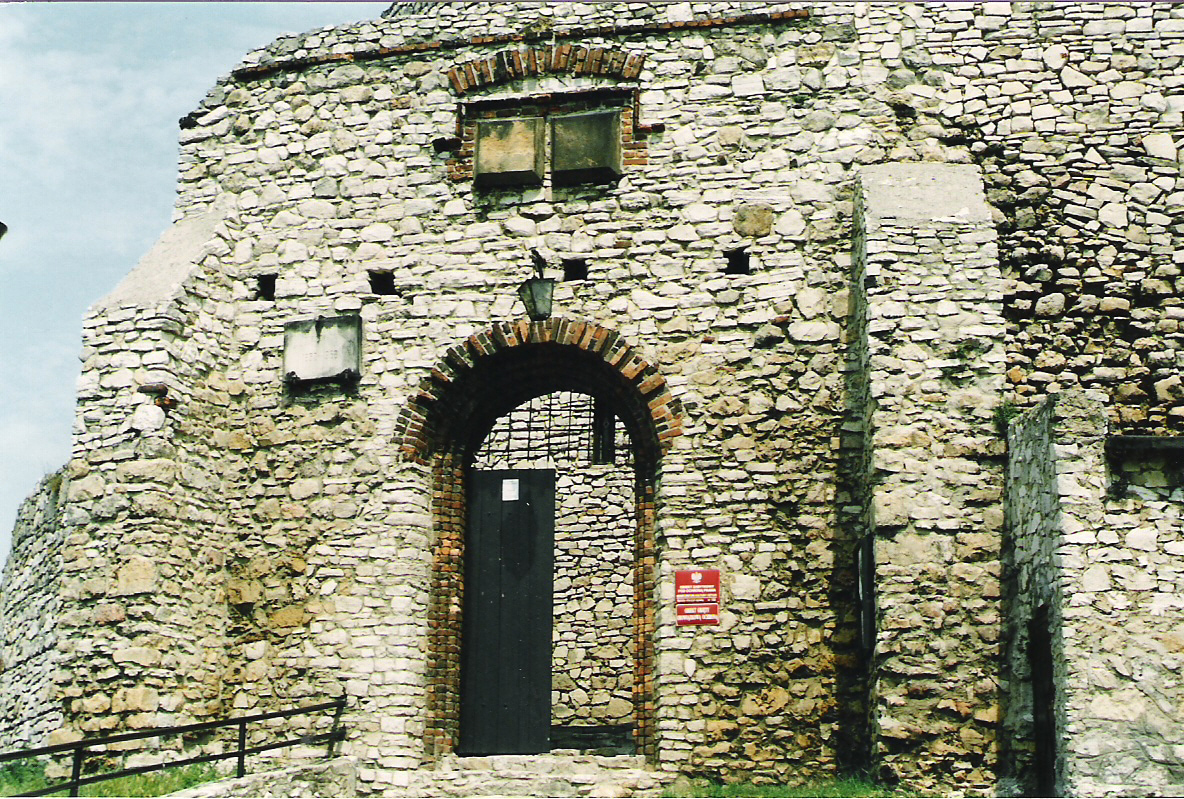 Mówiąc kolokwialnie, obecne wejście na zamek prowadzi przez dwie dziry w murze. Najpierw pierwsza „dziura”, potem idziemy kilkanaście metrów międzymurzem, aż napotykamu drugą „dziurę” i już jesteśmy na dziedzińu. Tymczasem w średniowieczu rzecz nie wyglądała tak prosto – to drugie wejście zostało przebite w murze wewnętrznym później, być może nawet dopiero w XVIII wieku. Jak zatem na zamek wchodzili pierwotni jego mieszkańcy? Otóż w miejscu, gdzie dziś znajduje się pierwsze wejście na zamek, znajdowała się specjalna wieża bramna, być może trzykondygnacyjna. Po wejściu do niej należało – tak jak dziś – skręcić w lewo i cały czas podążać międzymurzem. Po zrobieniu rundki dookoła zamku – teren tam cały czas się wznosił, podobnie jak dziś – dochodziło się ponownie do owej wieży, ale już na poziomie jej II kondygnacji. Po wejściu do środka trzeba było skierować się na prawo i wzdłuż zachodniej ściany budynku mieszkalnego, mniej więcej przez dzisiejszą kawiernię, wchodziło się na zamek. Do dziś zachowały się strzelnice w zachodniej ścianie kasztelu, skierowane na dziedziniec, co nie miałoby sensu, gdyby nie miały strzec wejścia na zamek.