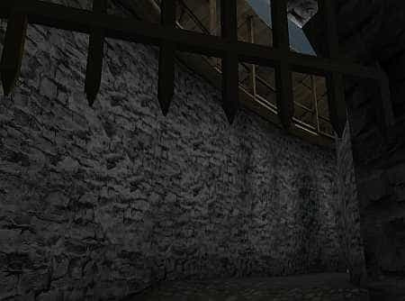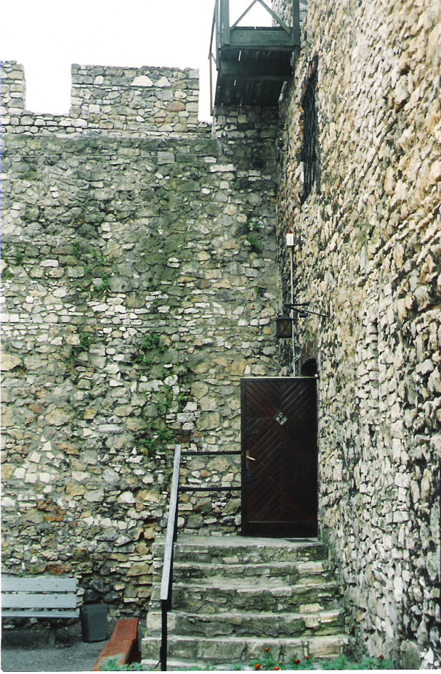 To samo miejsce, ale po drugiej stronie muru (mniej więcej nad tzw. murem arkadowym po wschodniej stronie zamku). W podłodze widoczne otwory służące do obrony miejsc bezpośrednio przylegających do murów.