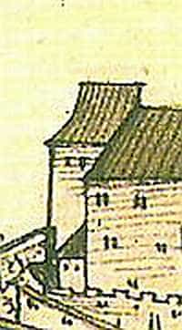 Sytuację niestety zaciemnia weduta Gerunga, znacznie wcześniejsza od powyższej ryciny, gdzie wieża jest znacznie niższa, bardziej masywna i przede wszystkim – zadaszona. Można założyć, że początkowo nie była pokryta dachem, który wzniesiono dopiero w czasach nowożytnych, na początku XVI stulecia, kiedy względy rezydencjonalne i estetyczne przeważały nad militarnymi. Jest to rozwiązanie logiczne i prawdopodobne, nadal jednak pozostaje kwestia wysokości. Akwarela Gerunga jest właściwie jedyna, która pokazuje wieżę okrągłą tak niską: