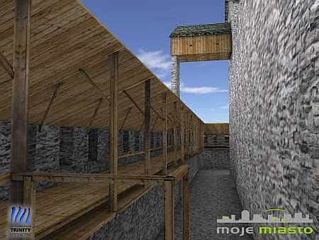 Tyle dawna ikonografia – trzy pierwsze wizerunki pochodzą sprzed rekonstrukcji Lanci`ego, co dla nas jest szczególnie istotne. Wszystkie późniejsze ryciny nie oddają już w żadnej mierze pierwotnego kształtu zamkowych murów. Ciężko tutaj o jakieś konkretne wnioski. Na prezentowanej tutaj we fragmentach wirtualnej rekonstrukcji zamku przyjęto dość swobodne i efektowne rozwiązania, często jednak stosowane w średniowiecznej praktyce budownictwa obronnego. Chodzi o tak zwane hurdycje, czyli rozbudowane drewniane ganki dla obrońców, częściowo wystające na zewnątrz murów, z otworami w podłodze w celu łatwej obrony bezpośredniego przedmurza. Zastosowano je tylko na zewnętrznym murze, na wewnętrznym nie miałyby racji bytu. Przy pełnej rekonstrukcji zamku (a więc zamku dolnego i górnego) ich rozkład także powinien być nieco zmieniony (Nie powinno ich być na odcinku oddzielającym obie części zamku). Spacer po takich hurdycjach mógłby wyglądać w sposób następujący: