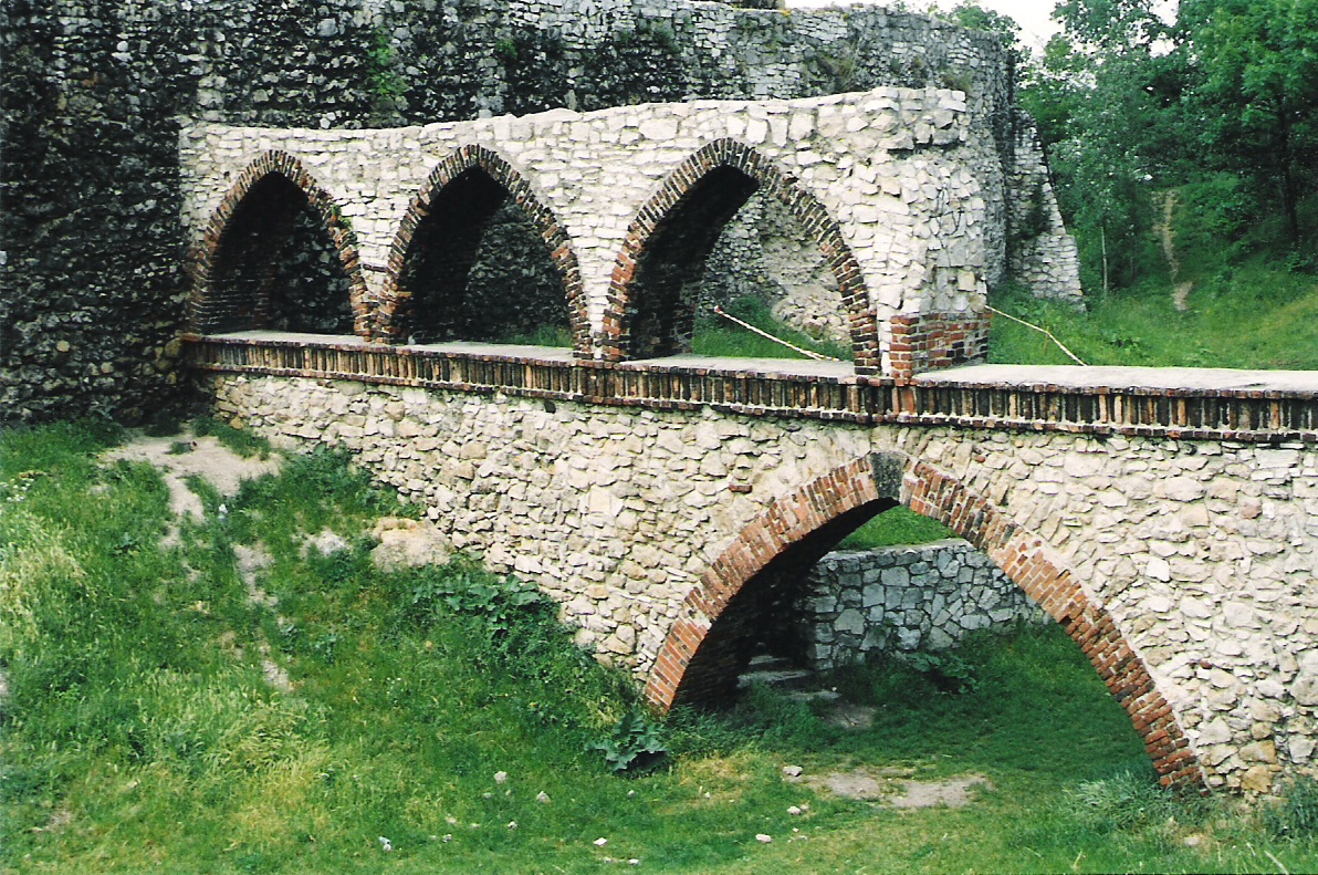 Będąc jeszcze przy sprawie murów, należy wspomnieć, ze przecinający suchą fosę zamku tzw. mur arkadowy jest dziełem dopiero XIX-wiecznym, choć zbudowanym w miejscu istniejącego wcześniej w tym samym miejscu muru obwodowego, okalającego całe miasto, wraz z zamkiem i kościołem. Duże fragmenty tego muru, z trzema wykuszowymi basztami (jedna przerobiona na budynek, w obrębie zabudowań parafii św. Trójcy), zachowały się do dziś. XIX-wieczne są także ślepe mahikuły na wschodniej ścianie wewnętrznego muru zamku górnego. Oba te elementy pochodzą z przebudowy zamku dokonanej przez Lanci`ego w 1834 roku i miały służyć „ugotyckowieniu” surowej bryły zamku.