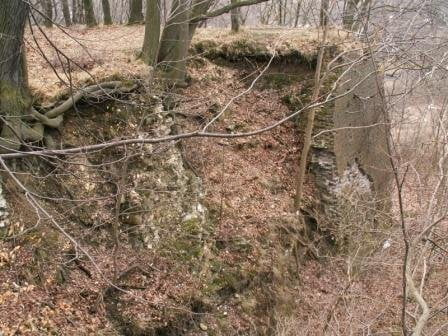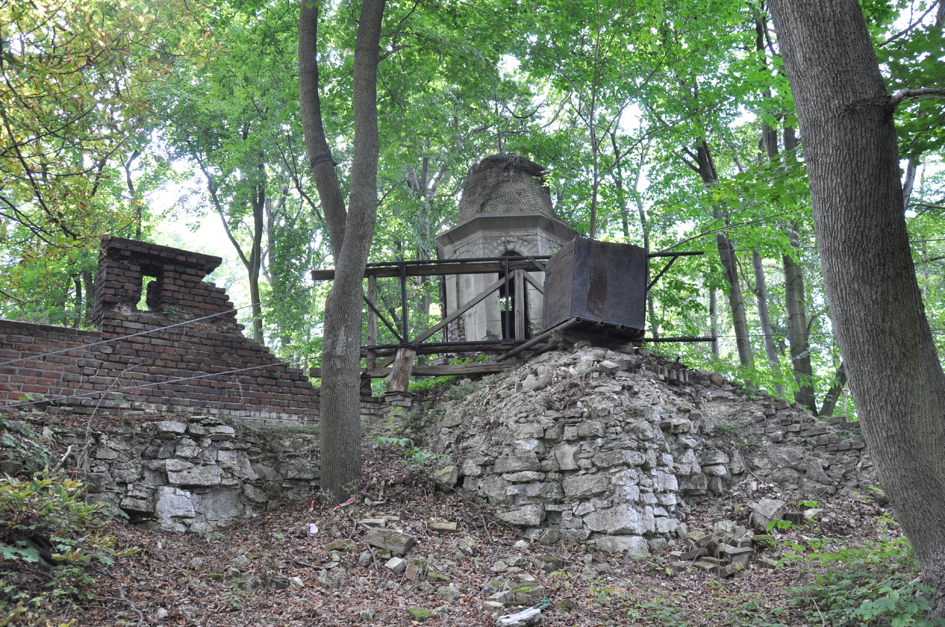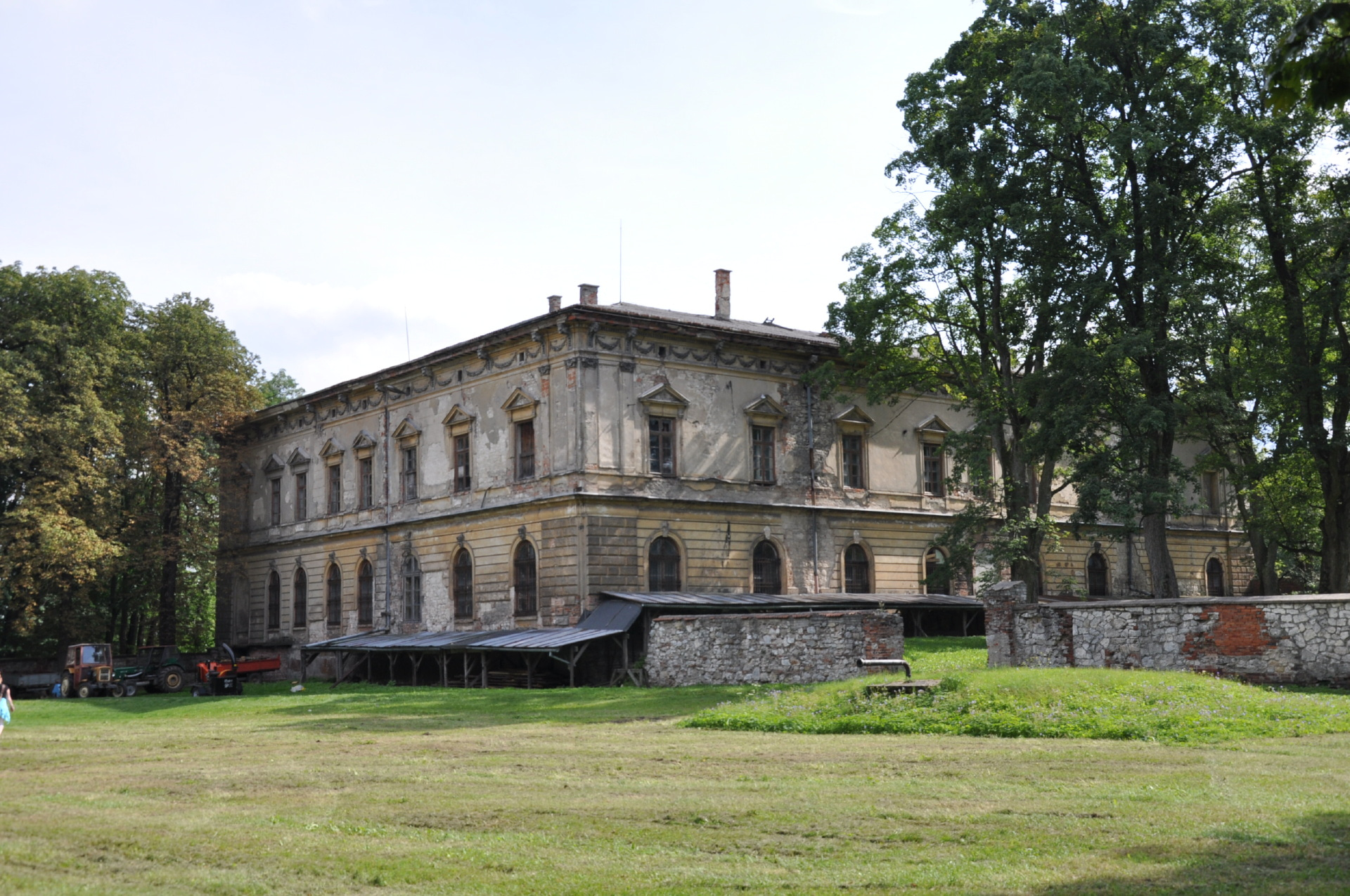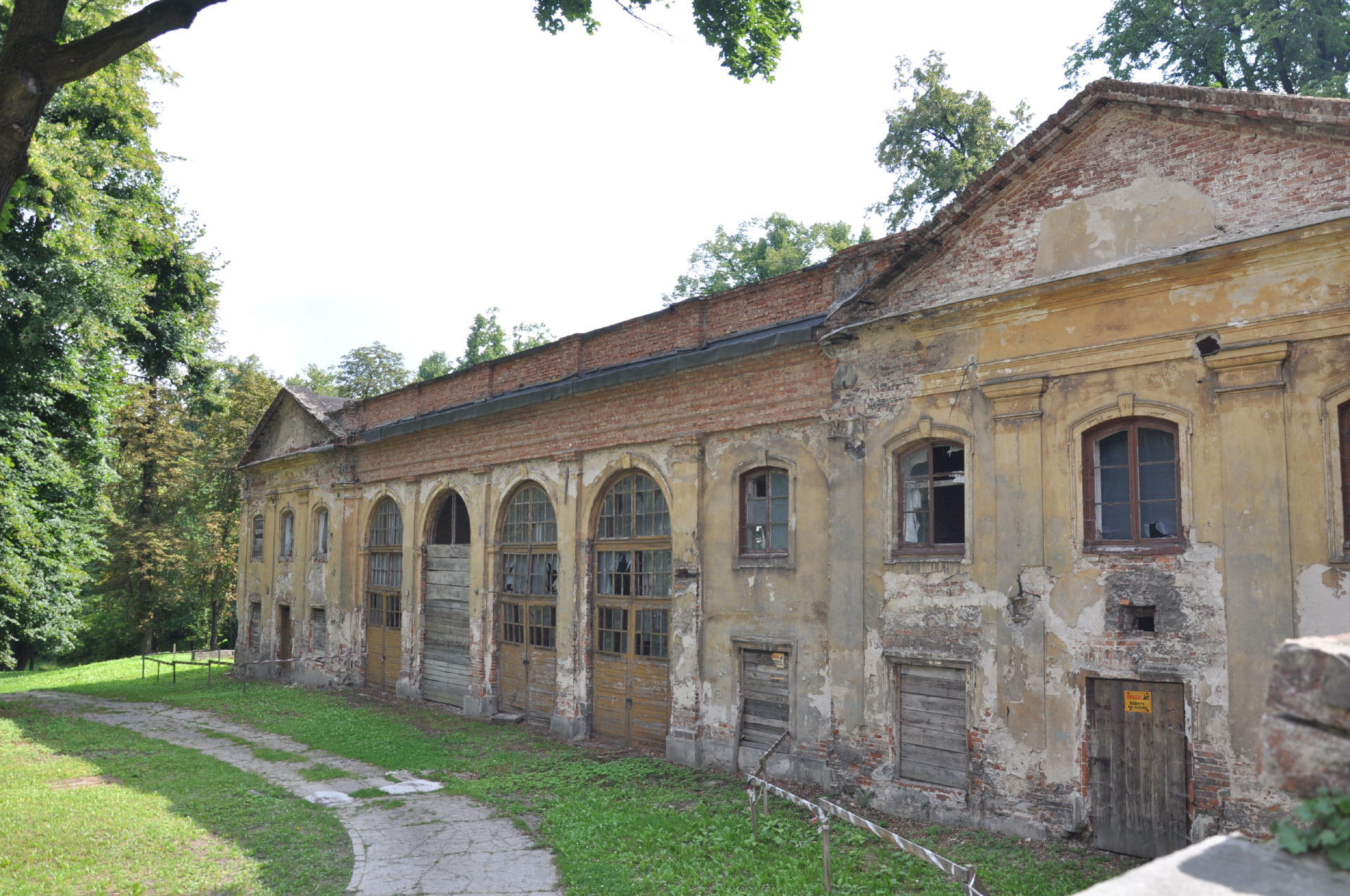 Budynek gospodarczy i jakieś wykopki w środku