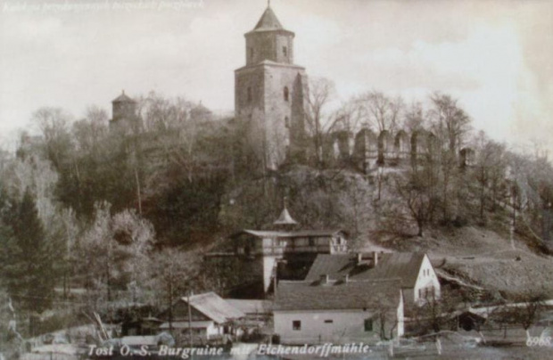 Historia budowli obronnych w Toszku sięga prawdopodobnie X–XI wieku, kiedy to na miejscu obecnego zamku stał drewniany gród, niegdyś kasztelania, należący w okresie rozbicia dzielnicowego do książąt śląskich, zastąpiony murowanym zamkiem na początku XV wieku. W 1429 zniszczyli go husyci, a odbudował i uczynił z niego swoją stałą siedzibę Przemysław Toszecki, książę z linii oświęcimskiej. Po jego śmierci w 1484 zamek był własnością książąt opolskich do śmierci Jana II Dobrego w 1532, a potem jako lenno królów czeskich przeszedł w ręce Habsburgów. Następnie zastawiony rodzinie Redernów został przez nią wykupiony w 1592 i odbudowany w stylu renesansowym. Redernowie nie tylko naprawili zniszczenia spowodowane pożarem z 1570, ale dodatkowo dobudowali pomieszczenia mieszkalne w części bramnej. Siostrzenica Jerzego II Rederna wyszła za mąż za hrabiego Kaspra Colonnę, któremu później jako właścicielowi zawdzięczał toszecki zamek kolejną przebudowę. W XVIII wieku rezydencja kilkakrotnie zmieniała właściciela, najpierw był nim baron Johann Dietrich von Peterswald, potem Franciszek Karol Kotuliński, Pasadowscy, w końcu rodzina poety Josepha von Eichendorffa. W 1897 Eichendorfowie sprzedali posiadłość hrabiemu Franciszkowi Adamowi Gaschinowi. Po pożarze z 1811 nie planowano już odbudowy rezydencji; w 1840 ruinę kupił Abraham Guradze. Jego rodzina była w posiadaniu zamku do II wojny światowej. W latach 1957–1963 zamek został częściowo odbudowany. Całość pierwotnego założenia zamku znajduje się dziś pod ziemią. Prace archeologiczne pozwoliły stwierdzić, że do pierwszej murowanej budowli należy środkowa część bramy wjazdowej. Również czterokondygnacyjna baszta u podstawy czworoboczna, powyżej ośmioboczna stoi na swoim pierwotnym miejscu, kryjąc pod sobą głębokie lochy. Za czasów Colonna powstały dwie boczne flankujące wjazd wieże. Budynek od północnej strony muru obronnego był w XVII wieku stajnią, o czym świadczyły zachowane ozdobne żłoby końskie w formie wnęk; w XVIII wieku zamieniony został na oranżerię. Prace przy przebudowie zamku zlecił Colonny mediolańskiemu architektowi Janowi Seregno, który był prawdopodobnie autorem projektu dwóch kamiennych ozdobnych portali: mniejszego nad wjazdem do stajni (z herbem Colonnów) i głównego wiodącego do rezydencji. Obecnie zamek stanowi siedzibę Centrum Kultury "Zamek w Toszku".