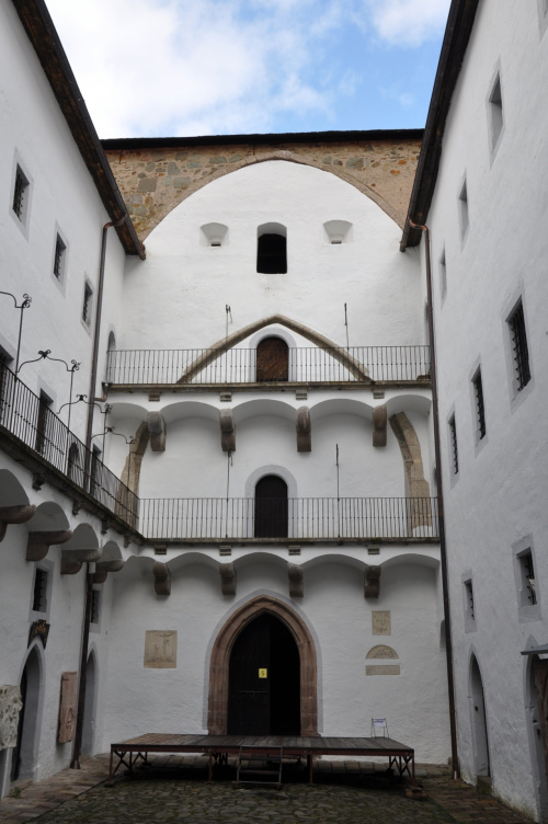 Na początku XVI wieku bazylikę przebudowano na gotycką świątynię. NIebezpieczeństwo najazdu tureckiego spowodowało konieczość kolejnej przebudowy, która zmieniła fortyfikowany kościół w twierdzę warowną. Sklepienie kościoła zburzono, i w ten sposób powstała dzisiejsza czteroskrzydłowa budowla pałacowa z wewnętrznym dziedzińcem w miejscu starej nawy głównej kościoła. Barokowa przebudowa w XVIII wieku dotyczyła szczególnie starej wieży wjazdowej.