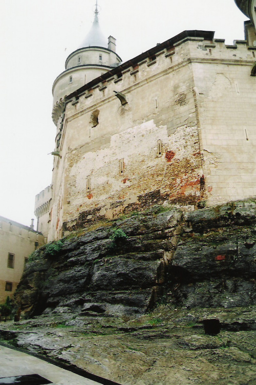 plan zamku: 1-mury średniowieczne od XIII do XV wieku, 2-XVI wiek, 3-XVII wiek, 4-przełom XIX/XX wieku