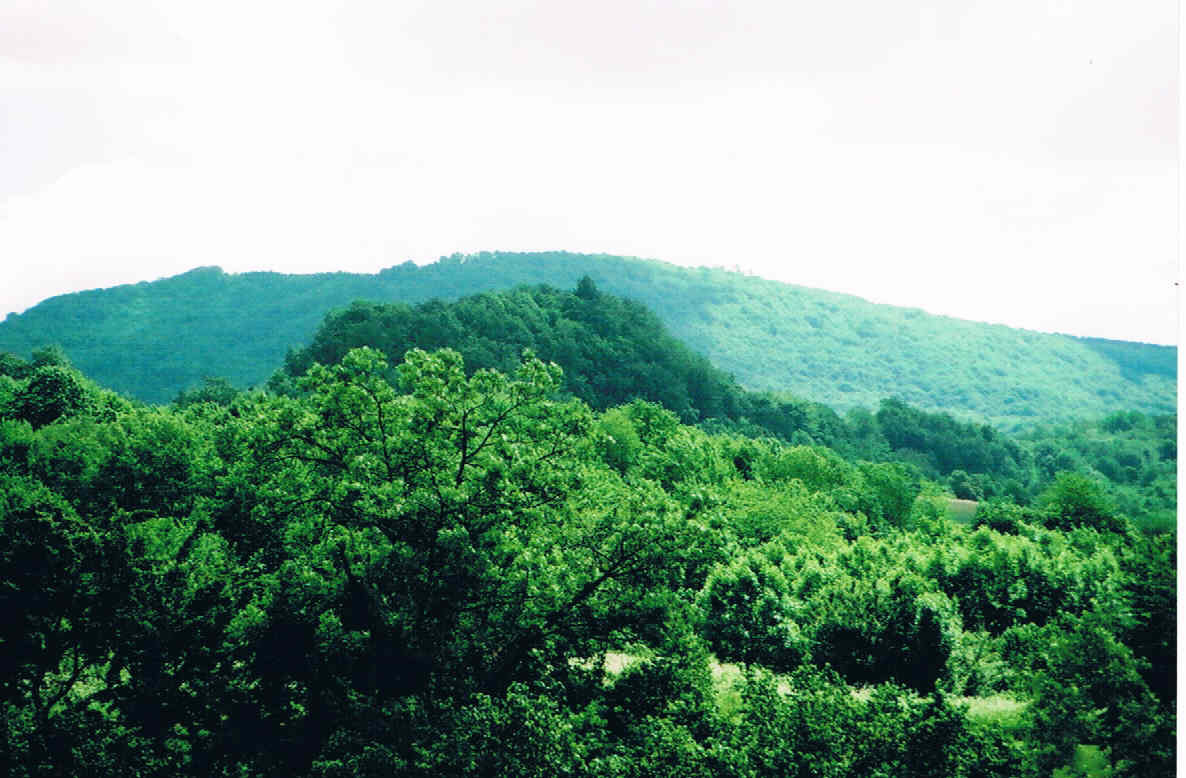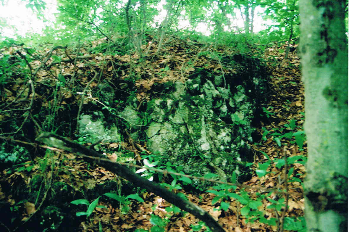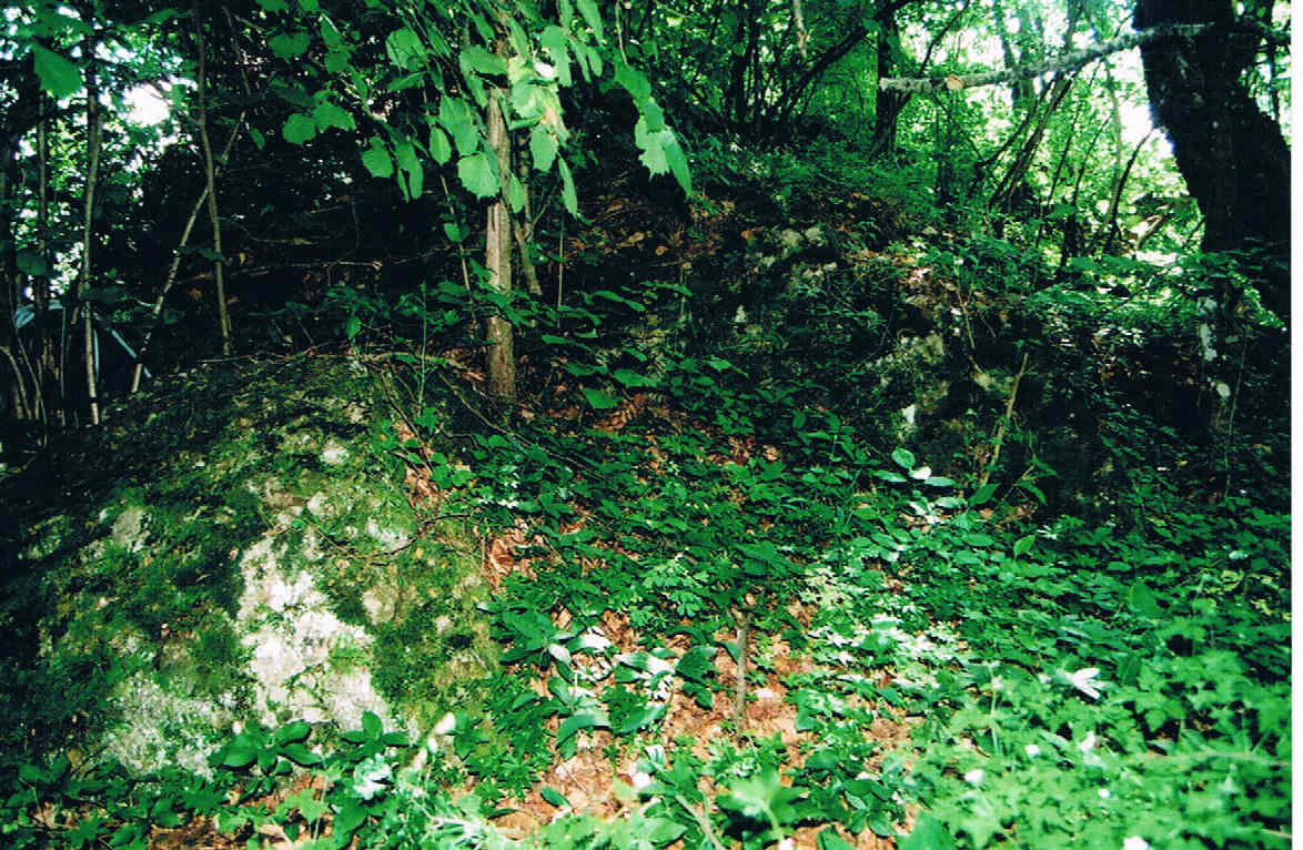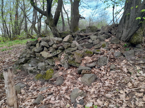 Kolejny mało znany zamek z którego pozostały jedynie drobne reliktu fundamentów, prawie nie do odróżnienia od skały na której zostały pozostawione. góra zamkowa (ciemniejsze wzniesienie pośrodku)