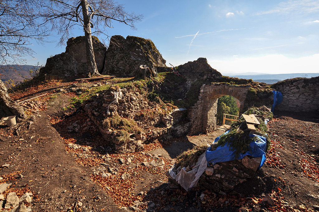 Ruiny zamku z XIII w., obecnie częściowo odbudowywane