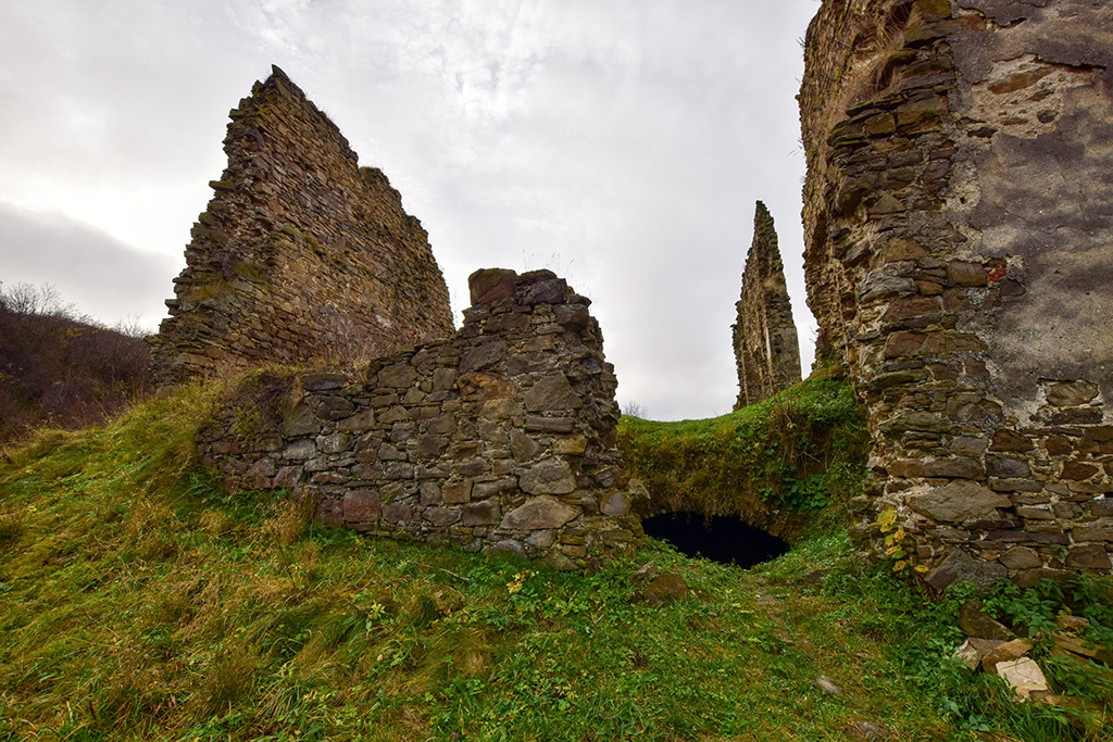 Ruiny niewielkiego zamku wybudowanego na przełomie XV/XVI wieku w stylu gotycko-renesansowym.