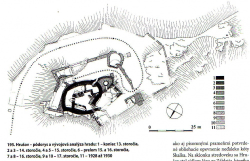 Ruiny zamku Hrušov znajdują się na pogórzu Tribeč nad miejscowością Topoľčianky. Został wybudowany prawdopodobnie pod koniec XIII wieku jako część państwa Mateusza Csaka. Zamek kontrolował ważną drogę łączącą Požitiavie z górnym regionem Ponitrie. W XV wieku zamek stał się majątkiem szlacheckiego rodu z miejscowości Topoľčianky. Po wymarciu tego rodu zamek czasowo przeszedł w ręce rodziny Rakoczy i włączył się w przeciwhabsburskie walki klasowe. W ich trakcie w 1708 roku cesarska armia zdobyła i zniszczyła zamek. Od tego czasu Hrušov zaczął upadać, ale najbardziej masywna środkowa część zamku zachowała się do dzisiaj. Do ruin prowadzi oznakowany szlak turystyczny, który rozpoczyna się na przystanku autobusowym na drodze państwowej między miejscowościami Topoľčianky a Skýcovo. Autem drogą asfaltową można się dostać do małej leśniczówki i stąd oznakowaną drogą iść na zamek. Zamek jest stopniowo rekonstruowany.